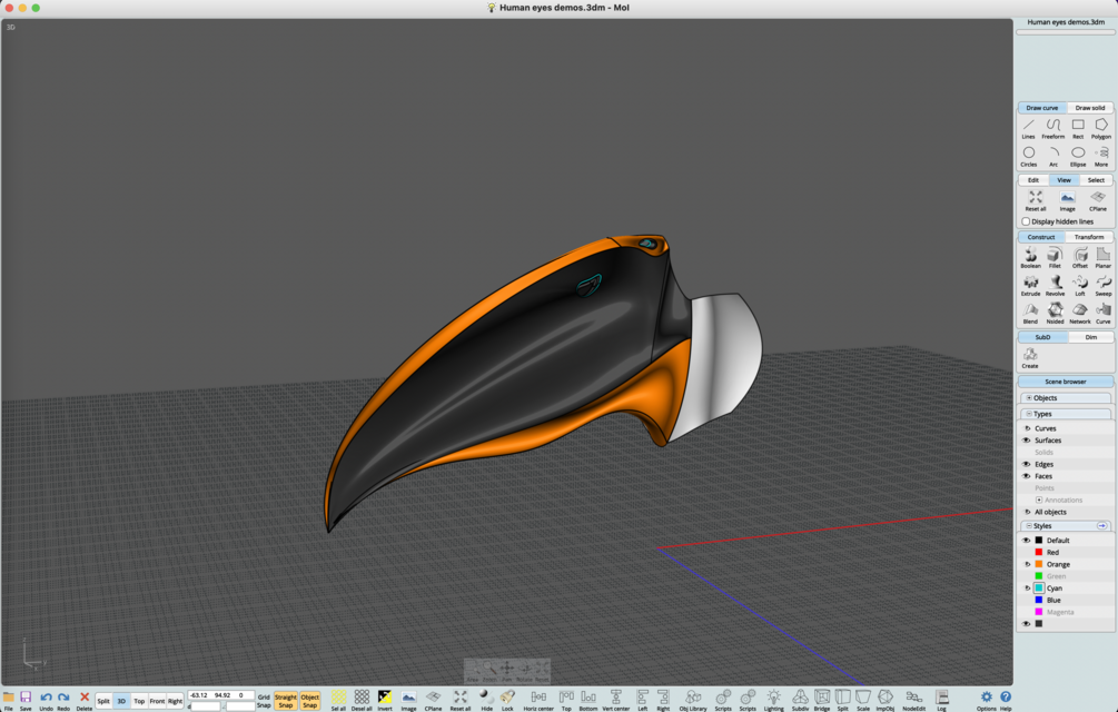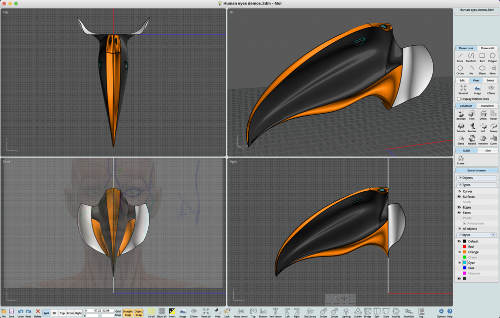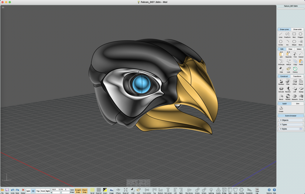 Moi3D surface design exercise: Falcon skull