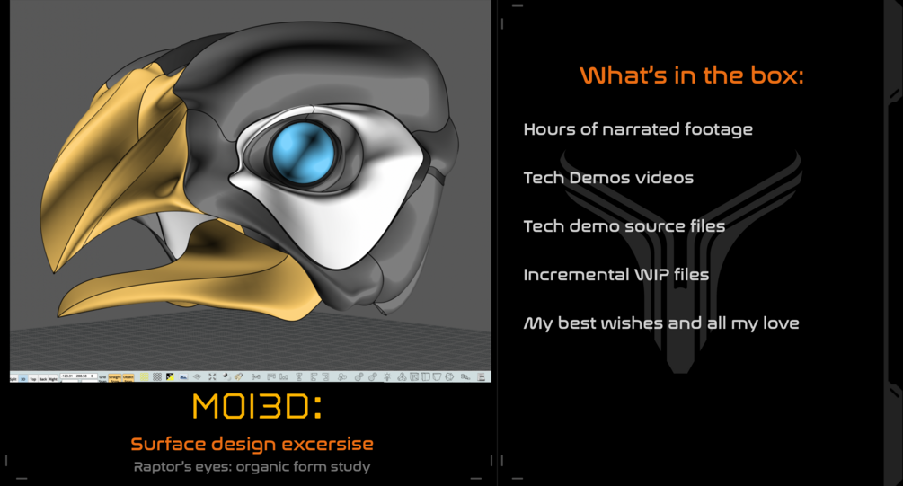 With This  MOI3D tutorial: Explore the nuances of surface generation techniques. Get real time tech demo videos and play around with the source files provided. Watch your skills evolve with incremental Work-In-Progress files of the falcon. It's more than just a tutorial – it's a creative adventure! Wishing you all the best.